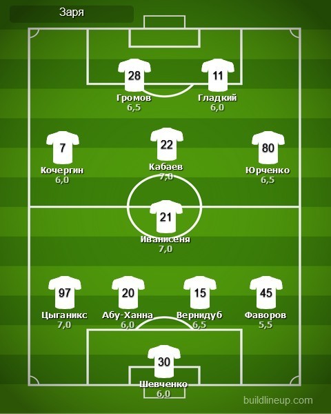 Заміни «Зорі»: Єгор Назарина – 6,0; Максим Луньов – 6,5; Аллах'яр Сайядманеш – б/о; Михайло Перович – б/о; Сергій Гринь – б/о.