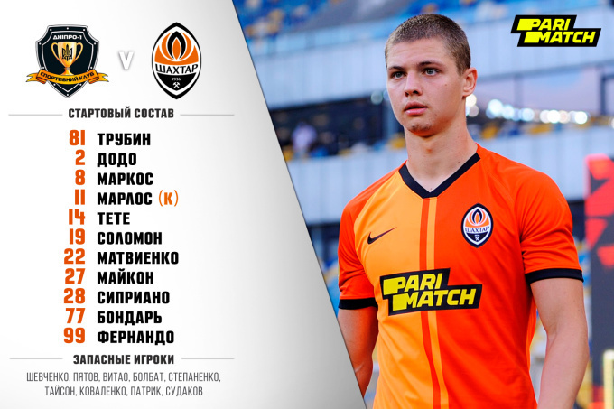 Шахтар: Трубін, Додо, Матвієнко, Бондар, Сіпріано, Маркос Антоніо, Майкон, Марлос, Тете, Соломон, Фернандо