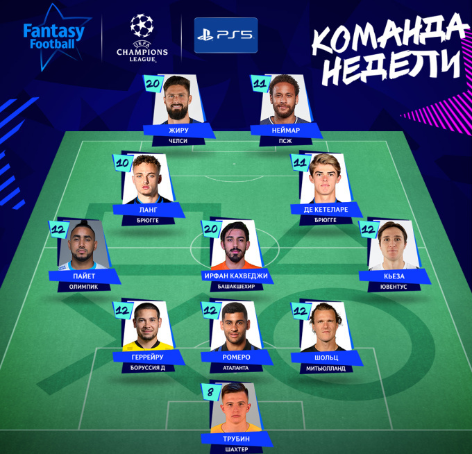 УЄФА визначив символічну збірну за підсумками 5-го туру групового етапу Ліги чемпіонів.
