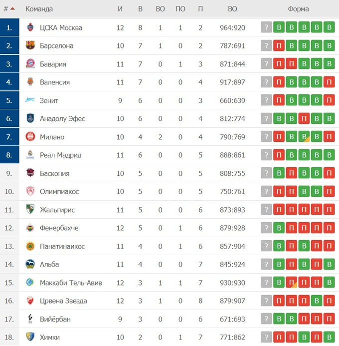 В рамках чергового туру Євроліги ЦСКА впевнено обіграв «Олімпіакос» і зміцнив свою позицію на першому місці. Також перемоги здобули «Маккабі» і «Панатінаїкос».