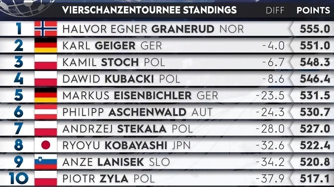 Другим став норвежець Халвор Егнер Гранеруд, який перехопив лідерство в загальному заліку Турне.