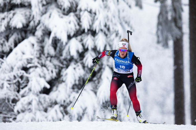 Норвежка Тіріл Екгофф, безсумнівно, стала найкращою біатлоністкою п'ятого етапу Кубка світу. У гонці переслідування переможниця спринту лідирувала з першого і до останнього метра дистанції. Втім, оформити золотий дубль без боротьби не вийшло. Якщо Тіріл допустила в гонці два промахи, то її співвітчизниця Марте Олсбю Ройселанд відстрілялася ідеально.