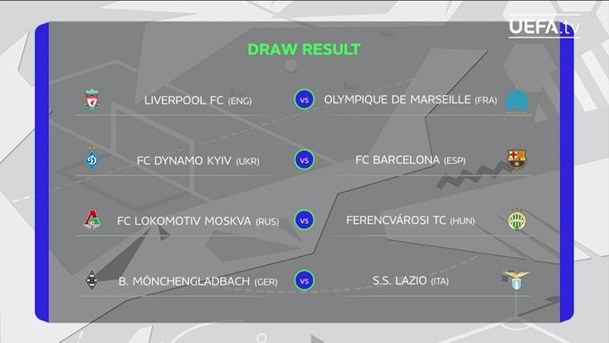 В результаті жеребкування на стадії 1/32 фіналу Шахтар (Донецьк) буде грати вдома проти Порту (Португалія), а Динамо (Київ) прийматиме Барселону (Іспанія).