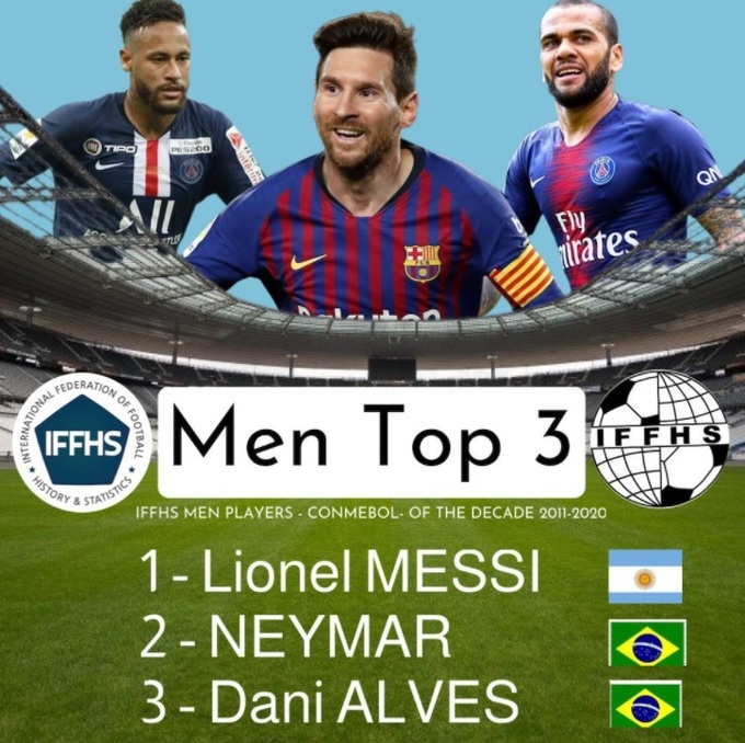 Міжнародна федерація футбольної історії і статистики (IFFHS) опублікувала рейтинг найкращих футболістів за останні 10 років в Південній Америці.