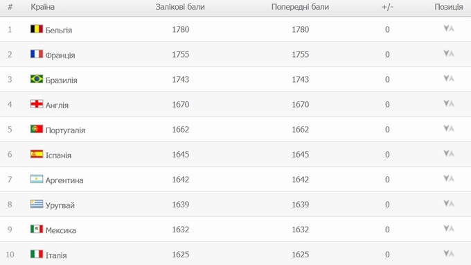 У порівнянні з попереднім рейтингом Україна не змінювала позицію і має 1521 бал. Серед представників УЄФА наша національна команда шістнадцята.