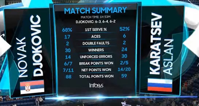 Новак Джокович (Сербія) - Аслан Карацев (Росія) - 6:3, 6:4, 6:2