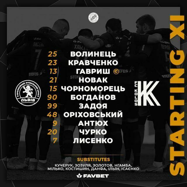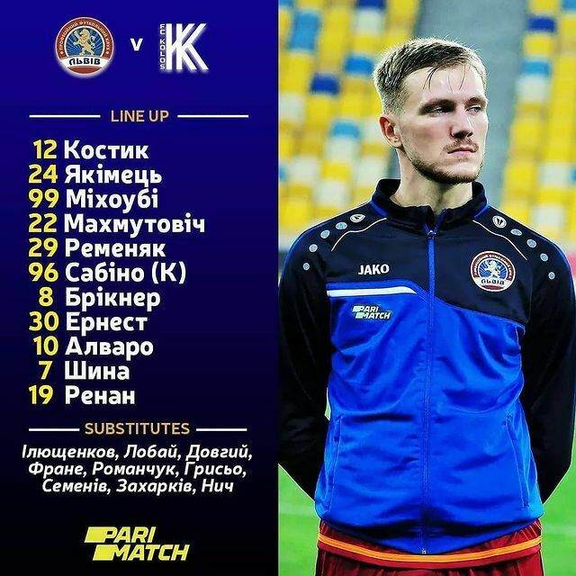«Львів»: Костик, Якимець, Маруан, Махмутович, Ременяк, Сабіно, Брікнер, Антві, Тавареш, Шина, Ренан.