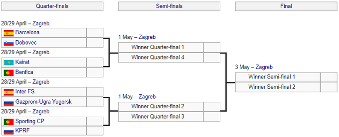 Виконком УЄФА вирішив призначити хорватський Загреб місцем проведення фіналу восьми Ліги чемпіонів з футзалу. Турнір спочатку повинен був пройти з 28 квітня по 3 травня в Мінську.