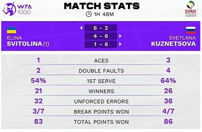 Це була шоста зустріч тенісисток, Кузнєцова виграла вдруге. Вперше це сталося зі скандалом на Кубку Кремля в 2016-му році. Нагадаємо, що перед тим матчем українці надходили погрози і обіцянки розправи в разі перемоги.