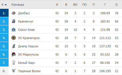Підсумкова турнірна таблиця