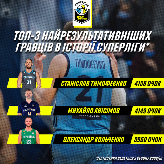 Набравши в поєдинку проти харків'ян тринадцять очок, Станіслав Тимофеєнко став найрезультативнішим гравцем в новітній історії Суперліги (відлік йде з сезону 2009/2010). Всього на рахунку форварда «Дніпра» 4158 набраних балів і він на дев'ять очок випередив Михайла Анісімова з показником в 4149 очок. Для досягнення такого результату Станіславу знадобилося провести 375 ігор (середня результативність становить 11,08 очок за гру).