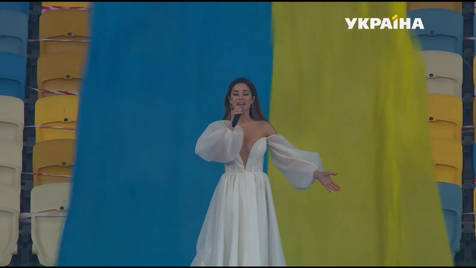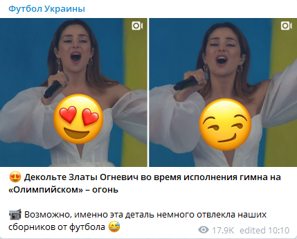У соцмережах жартують, що глибоке декольте Злати Огневич під час виконання гімну [відео] відволікло українську збірну від футболу.