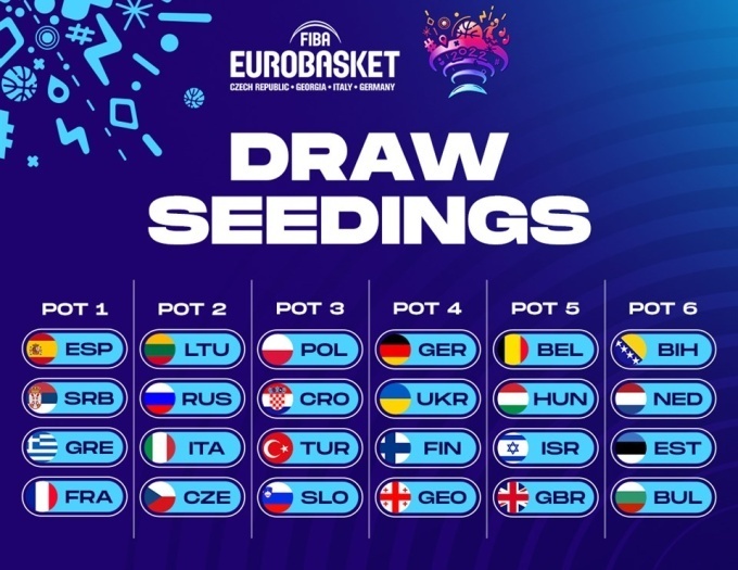 На Євробаскеті-2022 візьмуть участь 24 збірні, а українська національна команда опинилася в 4-му кошику разом з Німеччиною, Фінляндією і Грузією.