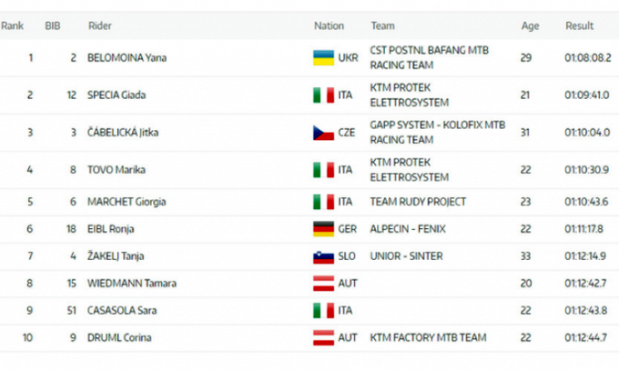 Нагадаємо, два тижні тому в Австрії на змаганнях Kamptal-Klassik-Trophy (25.5 км) Яна Беломоїна посіла друге місце (1:28.51), відставши на 2 хвилини 24 секунди від переможниці з Австрії Мони Міттервальнер (1:26.27).