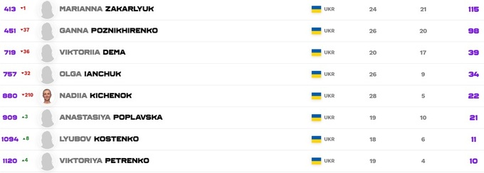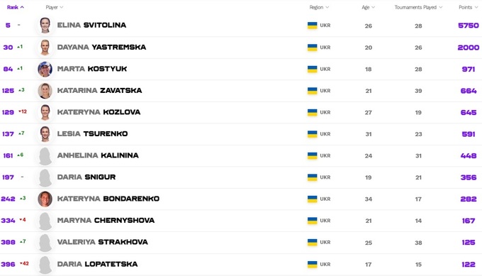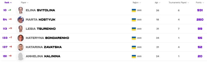 Що стосується інших українок, то багато хто почав втрачати очки, адже повна заморозка рейтингу вже не працює. Особливо це вдарило по Дар’ї Лопатецькій. Надія Кіченок втратила очки за позаторішнє несподіване подолання кваліфікації в Чарльстоні, але це не схоже на велику проблему.