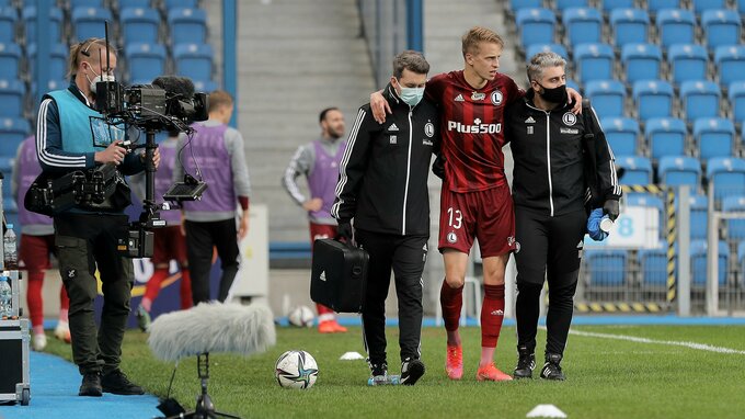 Під час кутового партнер по команді, центрбек «Легії» Матеуш В'єтеска, приземлився Шабанову на ногу.