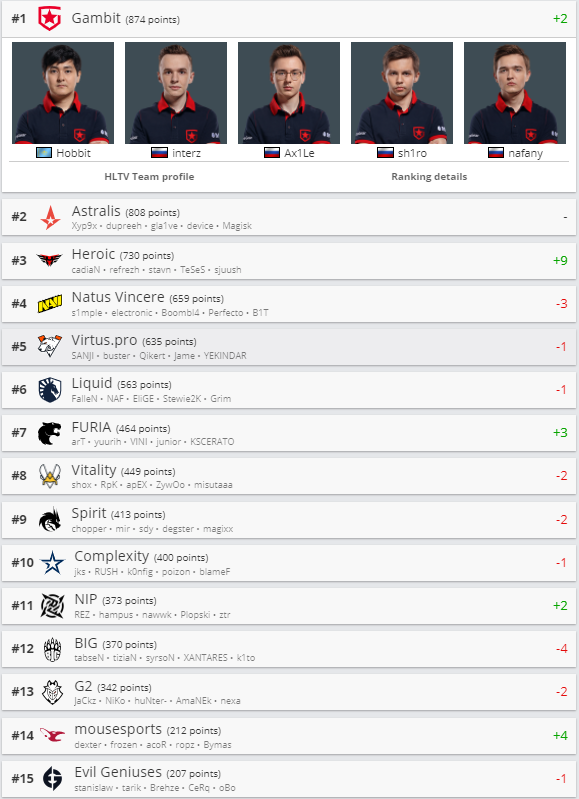 NAVI опустилися на четверте місце в світовому рейтингу, Gambit - лідер
