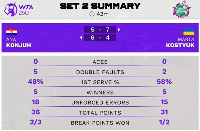 Марта Костюк (Україна) - Ана Конюх (Хорватія) - 7:5, 4:6, 6:3