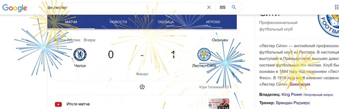 Google не залишив без уваги успіх команди Брендана Роджерса. При наборі в пошуковій системі назви «Лестер», на екрані з'являється анімація святкового феєрверку.