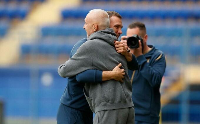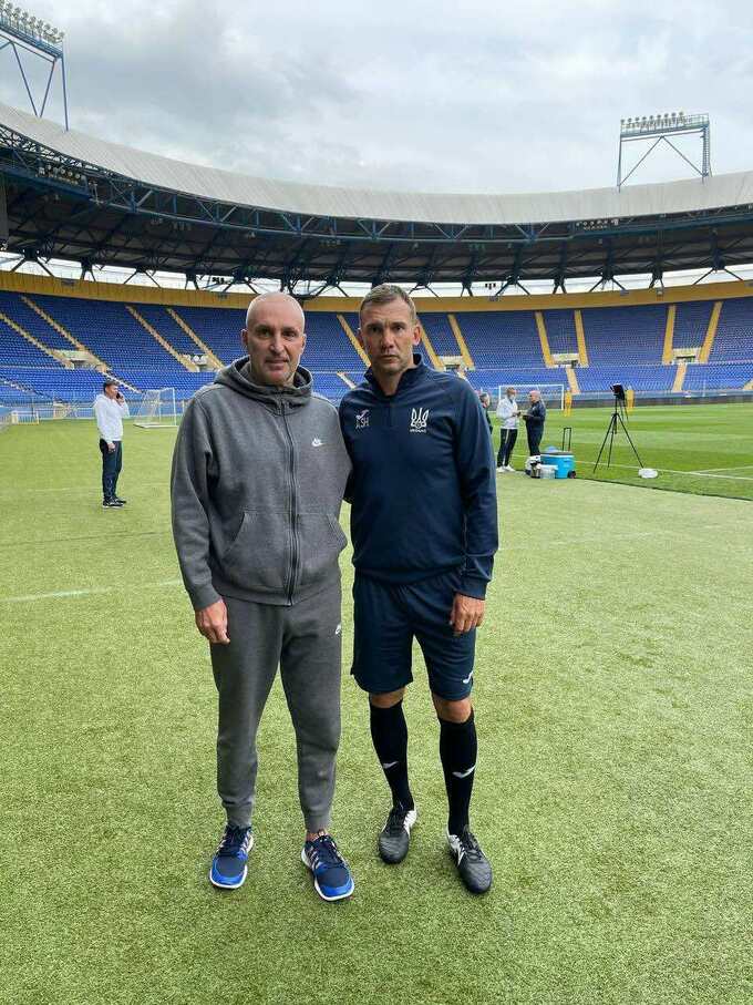 Президент харківського ФК Метал Євген Красніков, головний тренер цієї команди Олександр Кучер і президент ФК Металіст в 2005-2012 роках Олександр Ярославський тепло поспілкувалися з представниками тренерського штабу і гравцями національної команди, яка проводить збір напередодні Євро-2020.