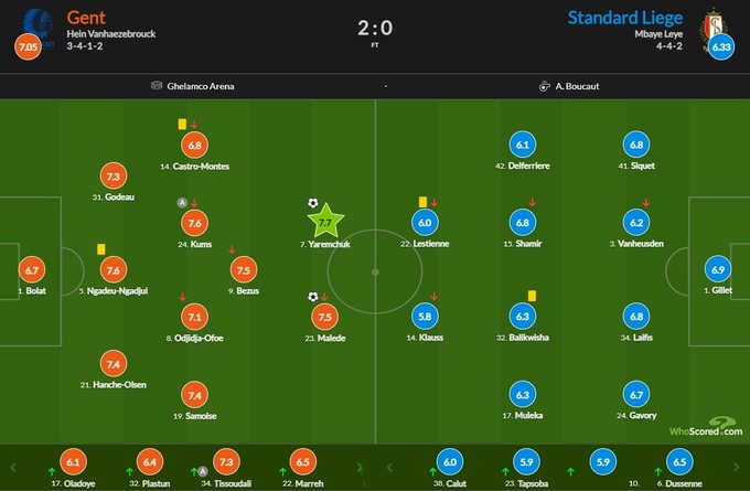 Яремчук — накращий гравець Гента у грі зі Стандардом за версією WhoScored