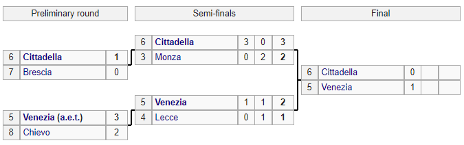 Нагадаємо, у півфінальних протистояннях «Венеція» виграла у «Лечче» (1:0, 1:1), а «Чіттаделла» довела перевагу над «Монцою» (3:0, 0:2).
