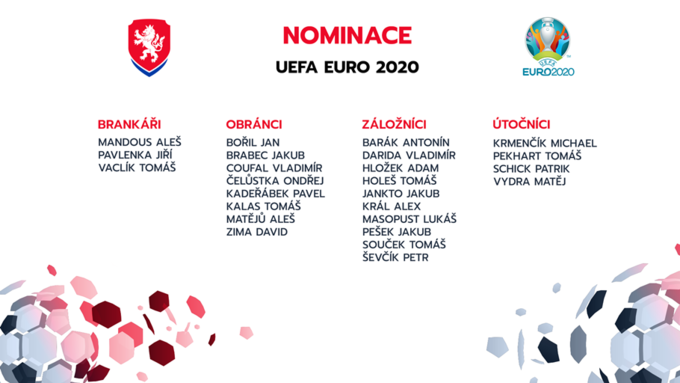Захисники: Ян Боржіл («Славія» Прага), Якуб Брабец («Вікторія»), Володимир Цоуфал («Вест Хем»), Ондржей Челустка («Спарта»), Павел Кадержабек («Хоффенхайм»), Томаш Калас («Брістоль»), Алеш Матею («Брешія»), Давід Зіма («Славія» Прага)