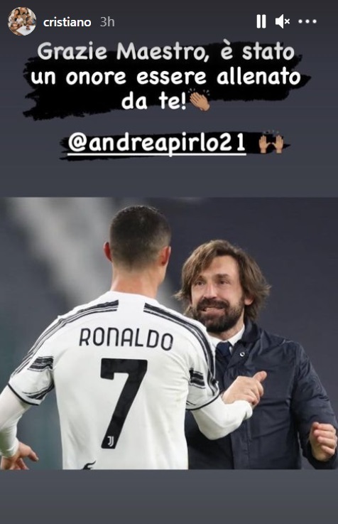 Лідер «Ювентуса» Кріштіану Роналду у себе в Інстаграмі попрощався з Андреа Пірло, який раніше був звільнений з поста головного тренера команди: