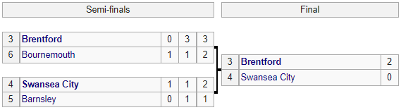 «Брентфорд» обіграв «Суонсі» (2:0) і вийшов в Прем'єр-лігу. Таким чином, команд з Уельсу в АПЛ в наступному сезоні не буде.