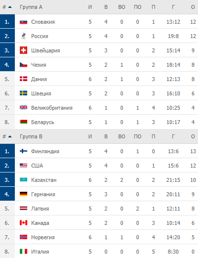 Турнірна таблиця ЧС-2021 з хокею