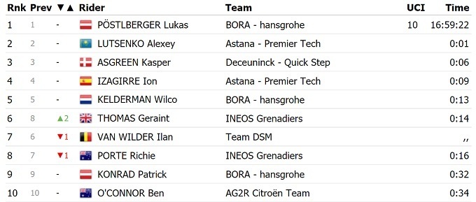 Лідерство в загальному заліку зберіг австрієць Лукас Постльбергер з «Bora Hansgrohe».