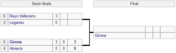 У матчі-відповіді півфіналу між «Альмерією» і «Жироною» була зафіксована нічия (0:0). Раніше в першій грі переміг клуб з Каталонії (3:0).