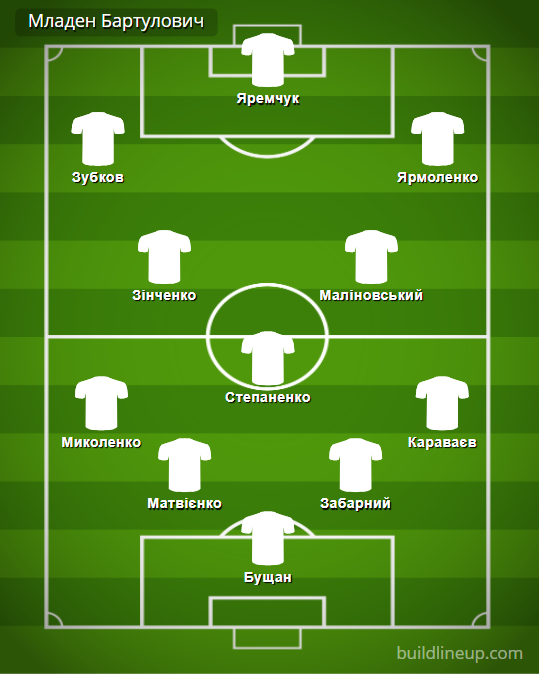 Попереду зіграє, звичайно ж, форвард «Гента» Роман Яремчук, який в цьому сезоні багато забивав за бельгійську команду. Без питань на цій позиції зіграє Яремчук, хоча у Романа є два гідних конкуренти, які завжди можуть добре вийти на заміну - це Артем Бєсєдін з «Динамо» і Артем Довбик з «Дніпра-1».