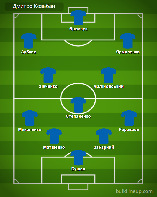 Справа в півзахисті зіграє досвідчений Андрій Ярмоленко з «Вест Хема». Він оформив дубль у товариському матчі з Кіпром, а тому довів, що він як і раніше є лідером збірної України. Зліва в півзахисті зіграє Олександр Зубков, який представляє «Ференцварош». Зубков привчив фанатів до своїх дриблінгів і яскравих проходів, а тому він буде загострювати попереду.