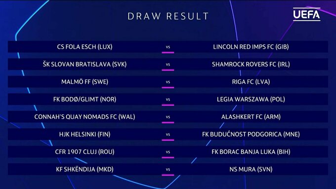 15 червня швейцарському Ньоні пройшло жеребкування першого відбіркового раунду Ліги чемпіонів 2021/22.