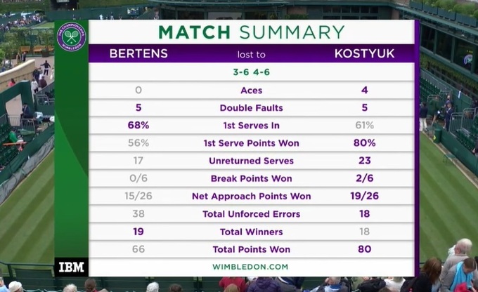 Друга партія проходила в рівній боротьбі, але Марті з рахунку 4:4 вдалося скористатися помилками суперниці і здобути перемогу в дебютному матчі в основі Вімблдону. Далі може бути набагато складніше, потрібно буде постаратися, щоб пройти до третього кола. Поки що це єдиний турнір Великого Шолома, в якому Марта там ще не грала.