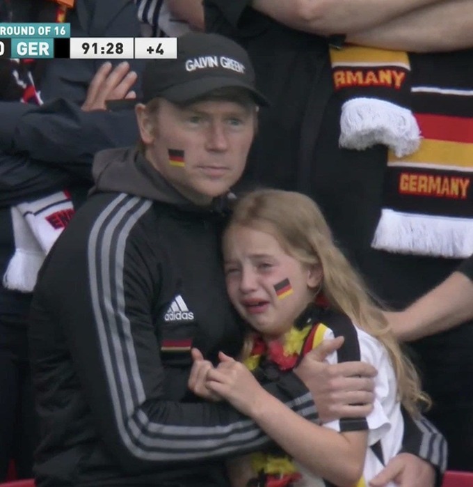 У компенсований час другого тайму у трансляцію потрапив кадр з німецькою дівчинкою, яка ридала на руках у свого батька.