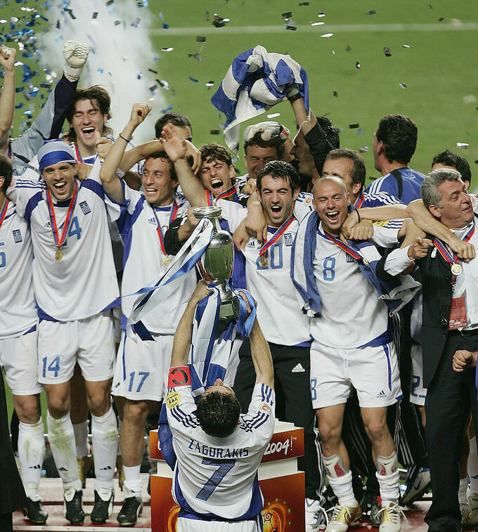 Турнір в 2004 році проходив у Португалії, а в його фіналі зійшлися господарі проти вкрай прагматичної команди Греції, яка стала головною сенсацією всього змагального процесу, зумівши послідовно усунути зі свого шляху в плей-офф Францію та Чехію. Примітно, що з Португалією Греція грала й на груповому етапі Євро-2004, обігравши тоді суперника з рахунком 2:1. У фіналі матч між добре відомими один одному опонентами був ще більш прагматичним, а перемогу в ньому грекам приніс єдиний м'яч Ангелоса Харістеаса.