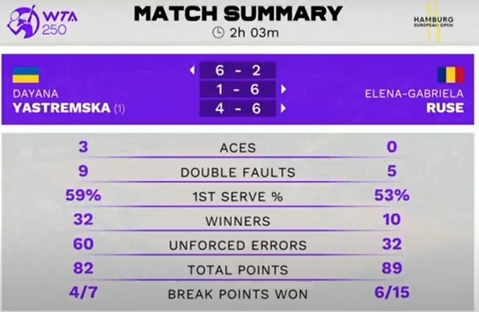 Даяна Ястремська (Україна) - Єлена-Габріела Русе (Румунія) - 6:2, 1:6, 4:6