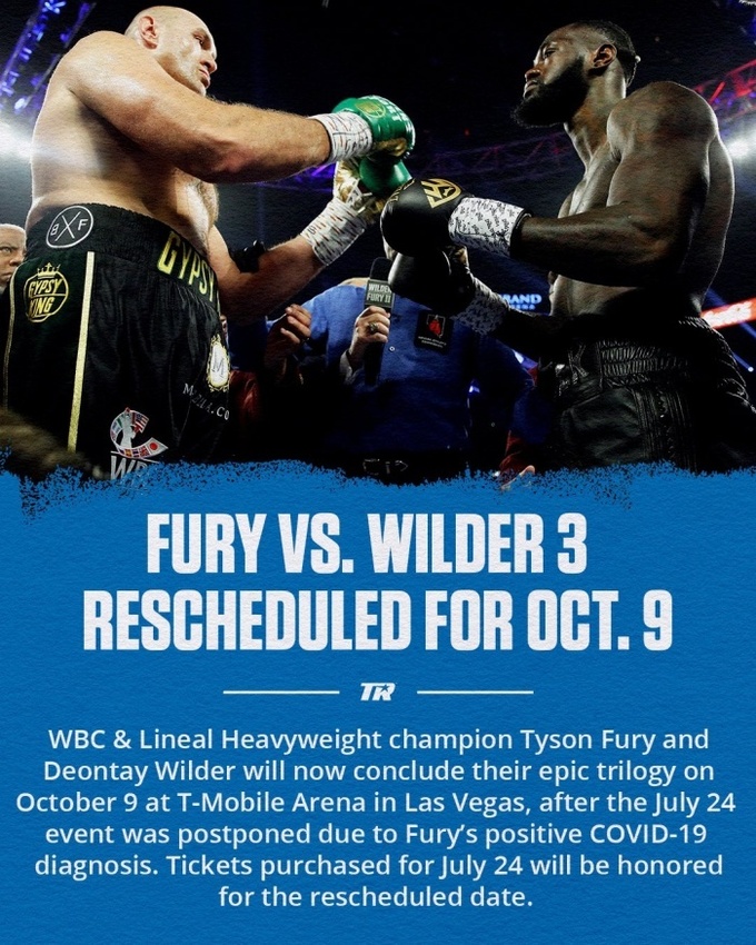 Поєдинок повинен був відбутися 24 липня, проте бій перенесли через коронавірус в таборі Ф'юрі. У тому числі заразився сам боксер.