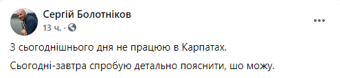 «З сьогоднішнього дня не працюю в «Карпатах». Сьогодні-завтра спробую детально пояснити, що можу».