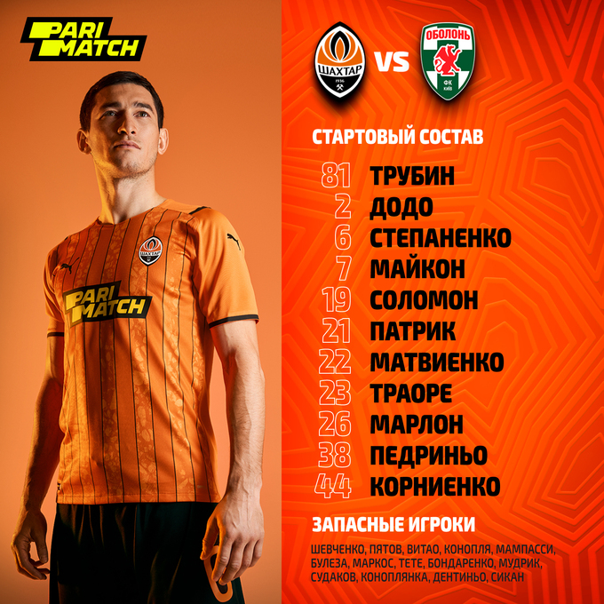 Склад «Шахтаря»: Трубін, Додо, Марлон, Матвієнко, Корнієнко, Майкон, Степаненко, Педріньйо, Патрік, Соломон, Траоре.