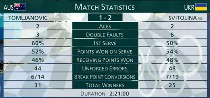 Еліна Світоліна (Україна) - Айла Томлянович (Австралія) - 4:6, 6:3, 6:4