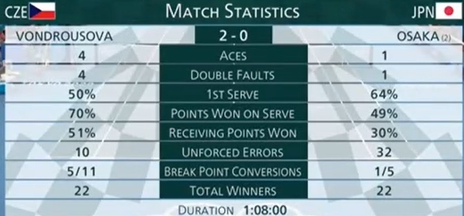 Маркета Вондроушова (Чехія) - Наомі Осака (Японія) - 6:1, 6:4