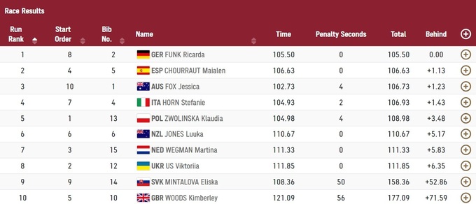 Олімпійською чемпіонкою стала німкеня Рікарда Функ, срібло дісталося Майален Чурраут, бронзу завоювала Джессіка Фокс.