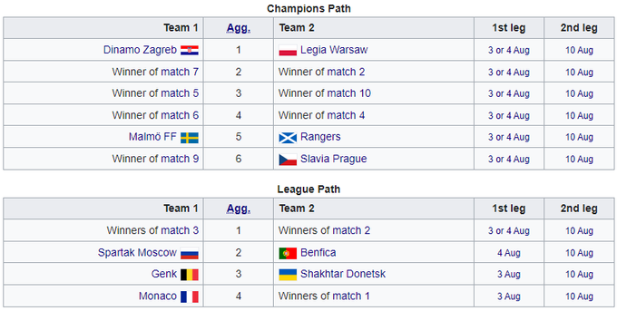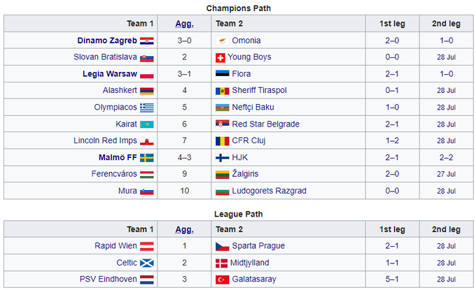 На наступному етапі ЛЧ «Динамо» Загреб зіграє проти «Легії», а «Мальме» буде протистояти шотландському клубу «Рейнджерс».