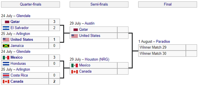 «У чвертьфіналі Мексика обіграла Гондурас (3:0), а Канада перемогла Коста-Ріку (2:0).