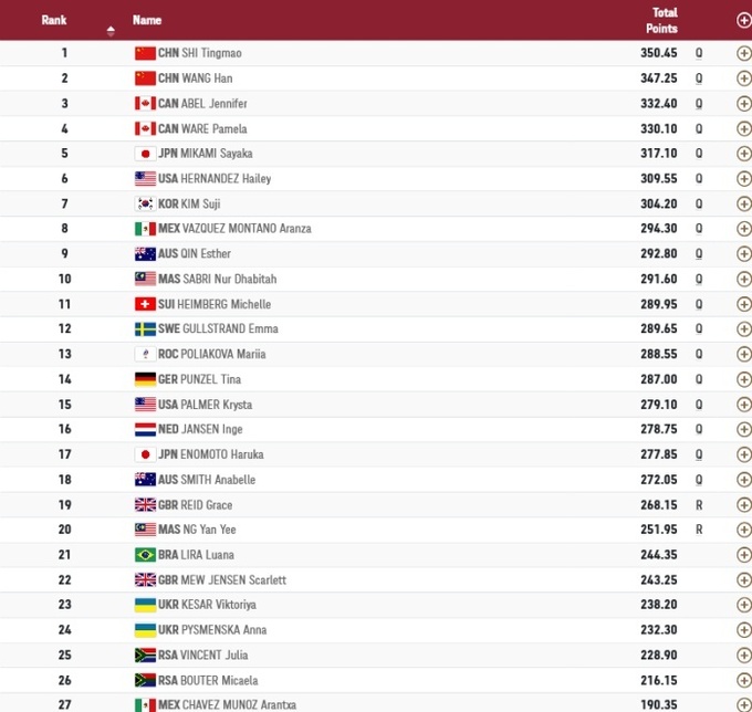 Для виходу в півфінал потрібно було закінчити в топ-18.
