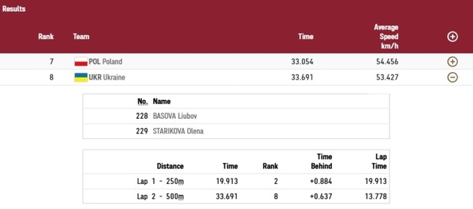 На Олімпіаді в Токіо були розіграні медалі в командному спринті на велотреку. Україну представляли Любов Басова і Олена Старікова.