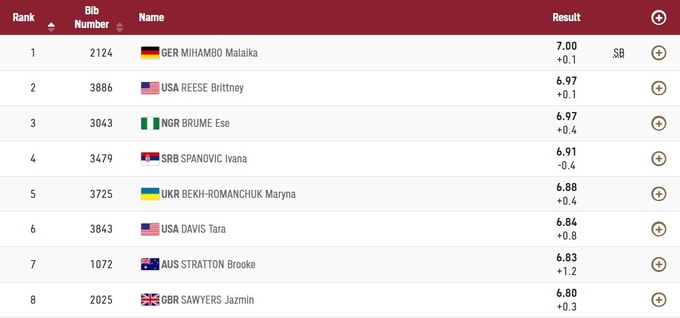 Українка Марина Бех-Романчук показала результат 6.88 метра і посіла п'яте місце. Відзначимо, що протягом фіналу, Бех-Романчук вдався лише один стрибок з шести, в інших п'яти спортсменка зробила заступ.